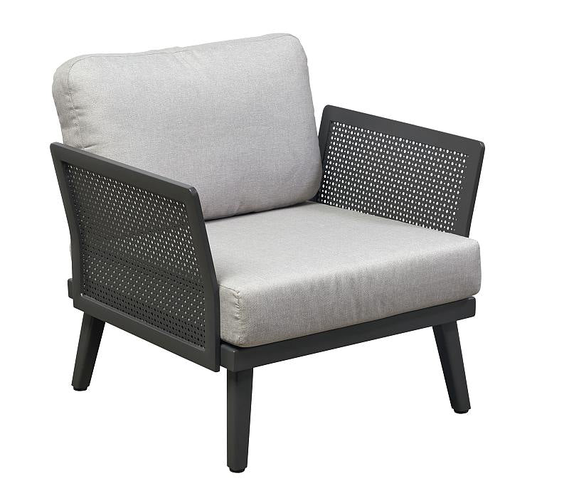Elevate your backyard entertaining area this summer with the perfect blend of comfort, design, and durability. This top-tier lounge setting is one of the best on the market, offering lightweight, maneuverability, and easy maintenance. Crafted from aluminum and stainless-steel bolts, it ensures superior rust resistance. The perforated aluminum sides and back add a unique, sleek European look that sets it apart