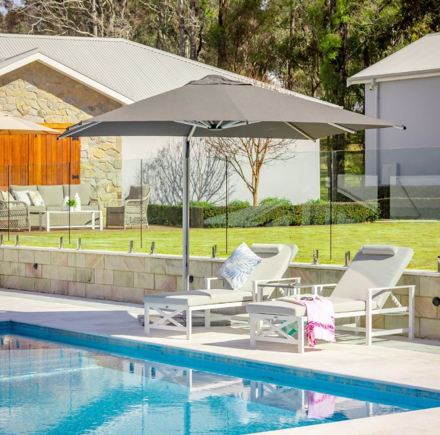 Siena is a revolutionary new addition to our cantilever range. It features a gas lift that makes opening and closing a simple, effortless process, no ropes, no pulleys, no winders. The track locks the canopy in both the open and closed positions. A Sunbrella solution dyed acrylic, wind vented canopy, mounted on a silver coloured aluminium anodised frame, will guarantee many years of trouble free service. A simple lever action allows rotation through 360°, in 10 fixed positions. Includes a 210gsm PU coated Polyester cover for added protection from the elements when the umbrella is not in use.